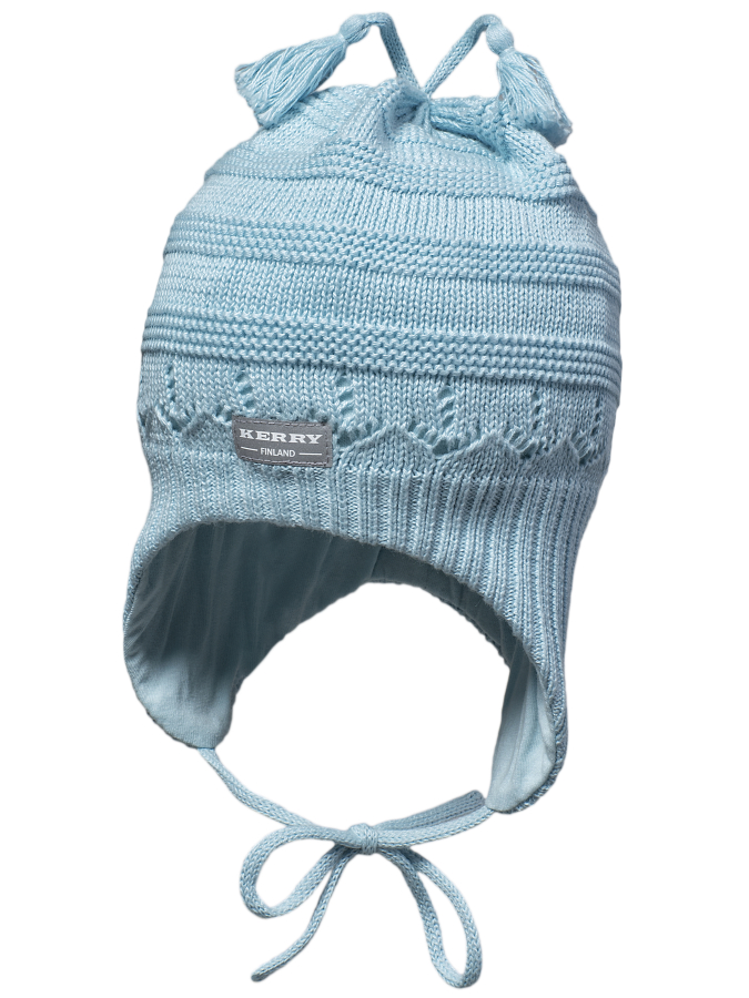 *Состав ткани: верх 100 % Хлопок; подкладка 100 % Хлопок *Демисезонная трикотажная шапка на хлопковой трикотажной подкладке, с завязками *Цвет нежно-голубой