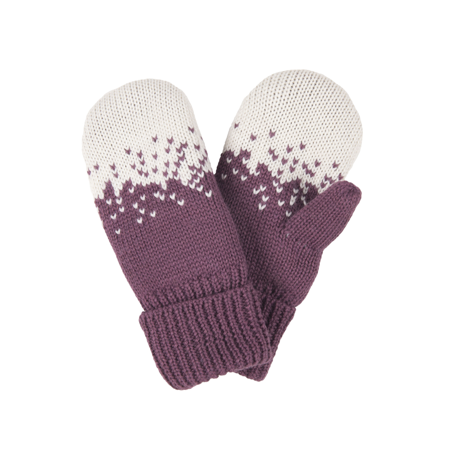 *Состав ткани: верхняя ткань – 50% Шерсть, 50% Акрил; подкладка 100% Полиэстер *Теплые варежки двойной вязки на флисовой подкладке *Цвет темный лилово-серый, белый