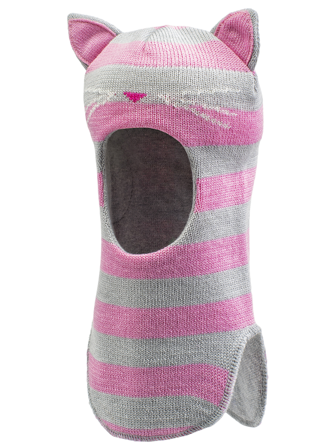 *Состав ткани: верхняя ткань – 50% Шерсть, 50% Акрил; подкладка 100% Хлопок *Теплый шлем, двойной *В области ушей имеется ветрозащитная мембрана *Цвет серый-металлик, пурпурно-розовый