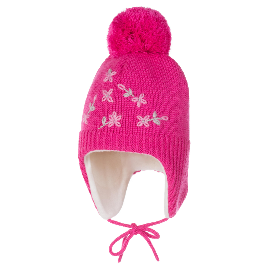 *Состав ткани: верхняя ткань – 50 % Шерсть мериноса, 50 % Акрил; подкладка – 100 % Органический хлопок *Теплая шапка с помпоном, на завязках, на хлопковом флисе *В области ушей имеется ветрозащитная мембрана *Цвет розовый