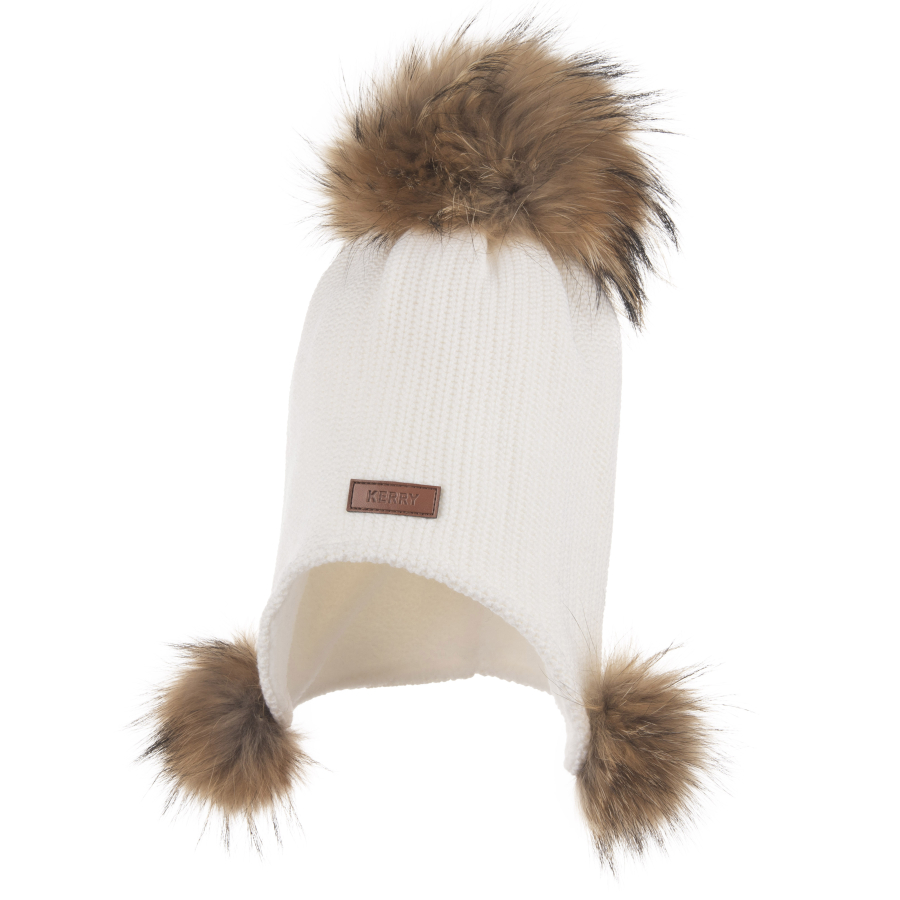 *Состав ткани: верхняя ткань – 50% Шерсть, 50% Акрил; подкладка 100% Полиэстер *Теплая шапка на флисовой подкладке со съемными помпонами из меха енота *Цвет белый