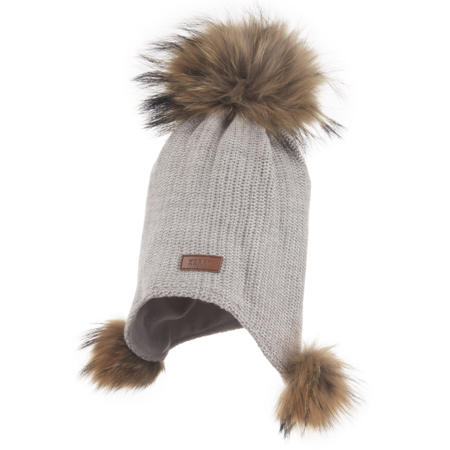 *Состав ткани: верхняя ткань – 50% Шерсть, 50% Акрил; подкладка 100% Полиэстер *Теплая шапка на флисовой подкладке со съемными помпонами из меха енота *Цвет серый