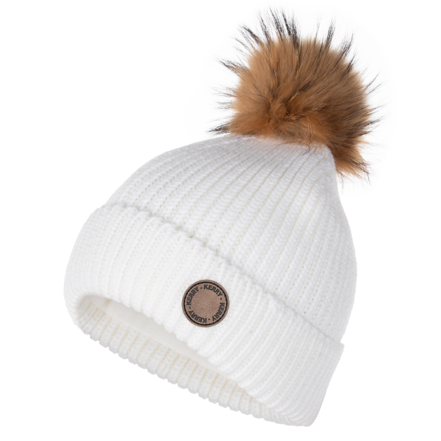 *Состав ткани: верхняя ткань – 100 % Акрил; подкладка – 100 % Полиэстер *Очень теплая шапка объемной вязки на флисовой подкладке, с отворотом *Помпон из натурального меха *Цвет белый
