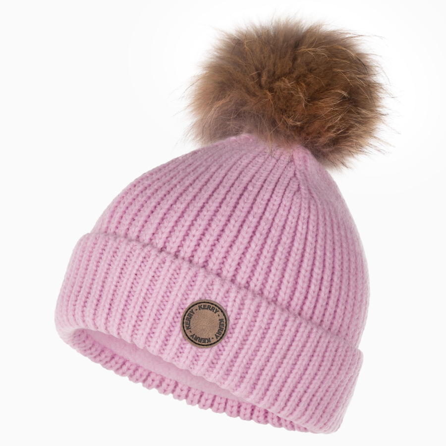 *Состав ткани: верхняя ткань – 100 % Акрил; подкладка – 100 % Полиэстер *Очень теплая шапка объемной вязки на флисовой подкладке, с отворотом *Помпон из натурального меха *Цвет бледно-сиреневый