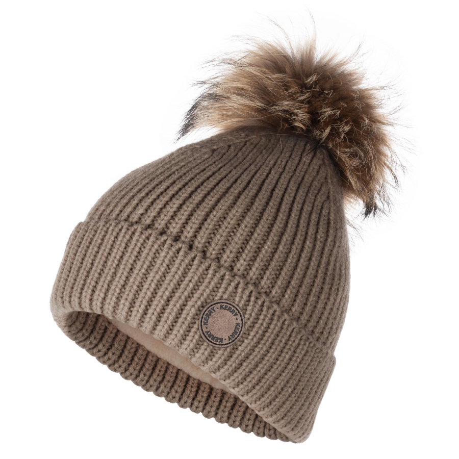 *Состав ткани: верхняя ткань – 100 % Акрил; подкладка – 100 % Полиэстер *Очень теплая шапка объемной вязки на флисовой подкладке, с отворотом *Помпон из натурального меха *Цвет серо-бежевый
