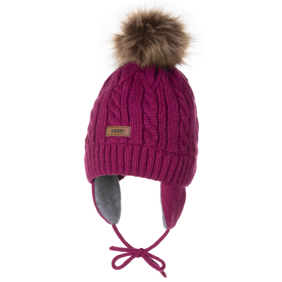 *Состав ткани: верхняя ткань – 100 % Акрил; подкладка 100 % Полиэстер *Теплая шапка объемной вязки на флисовой подкладке, с завязками, со съемным помпоном из искусственного меха *Цвет розовато-лиловый