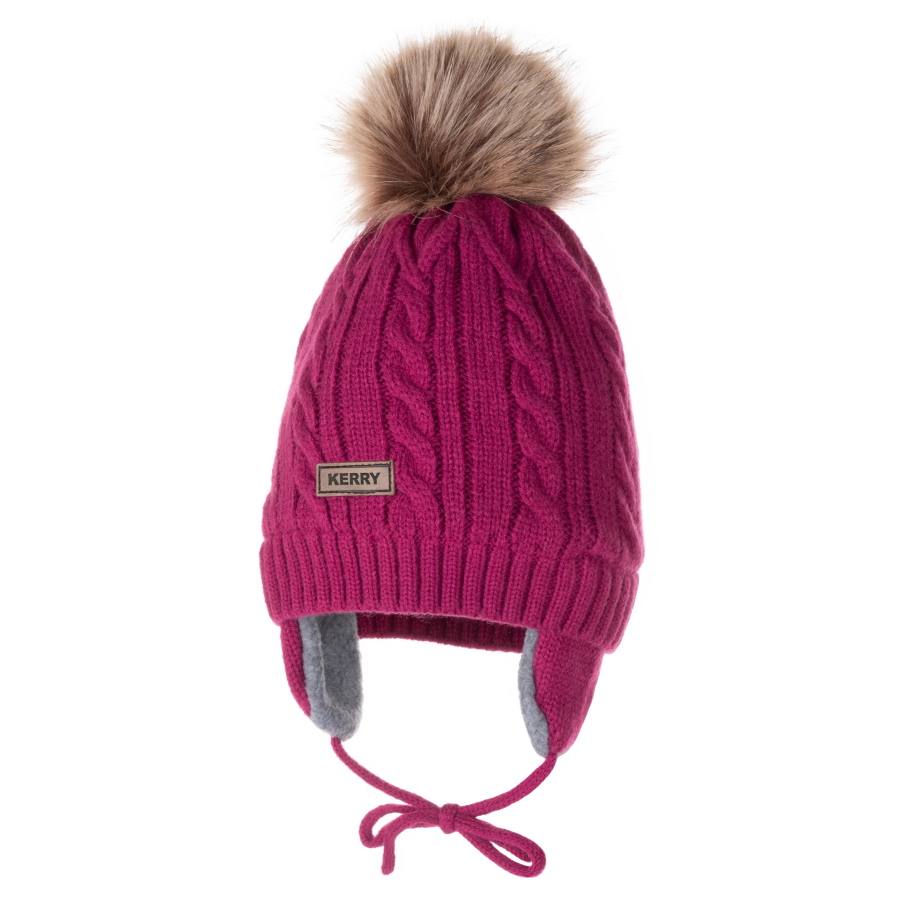 *Состав ткани: верхняя ткань – 100 % Акрил; подкладка – 100 % Полиэстер *Теплая шапка объемной вязки на флисовой подкладке, на завязках, с отстегивающимся помпоном *Цвет темный красно-пурпурный