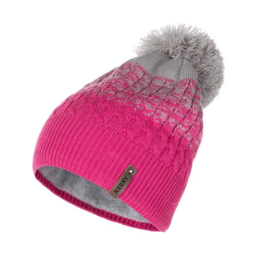 *Состав ткани: верхняя ткань – 100 % Акрил; подкладка – 100 % Полиэстер *Теплая шапка объемной вязки на флисовой подкладке, с помпоном *Цвет серый, глубокий розовый