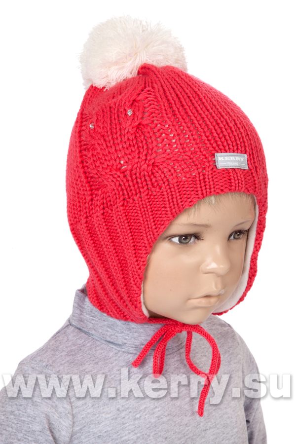 *Состав ткани: верхняя ткань – 50% Шерсть, 50% Акрил; подкладка 100% Хлопок *Теплая шапка объемной вязки на завязках *Подкладка - хлопковый флис *Цвет кирпично-красный, белый