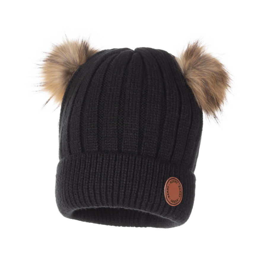 *Состав ткани: верхняя ткань – 100 % Акрил; подкладка 100 % Полиэстер *Теплая шапка объемной вязки на флисовой подкладке, с отворотом, со съемными помпономи из меха енота *Цвет черный