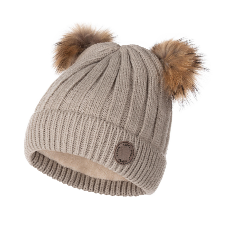 *Состав ткани: верхняя ткань – 100 % Акрил; подкладка – 100 % Полиэстер *Теплая шапка объемной вязки на флисовой подкладке * Съемные помпоны из меха енота *Цвет галечный серый