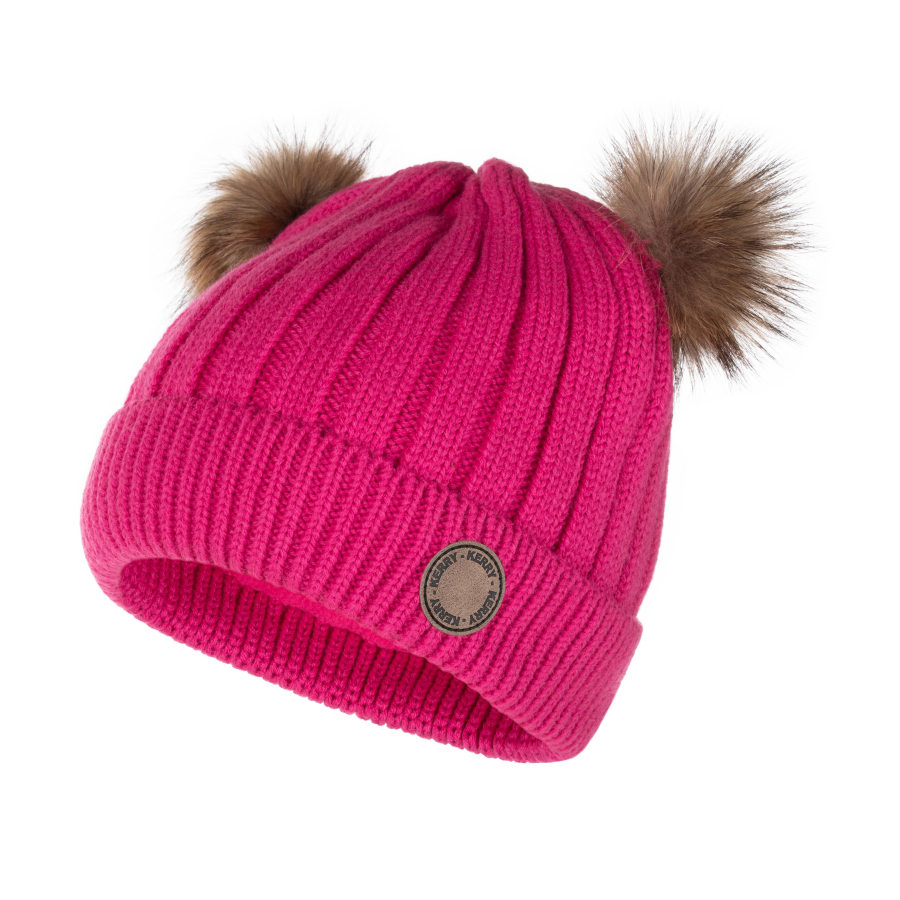 *Состав ткани: верхняя ткань – 100 % Акрил; подкладка – 100 % Полиэстер *Теплая шапка объемной вязки на флисовой подкладке, с отворотом *Помпоны из натурального меха, отстегиваются *Цвет глубокий розовый