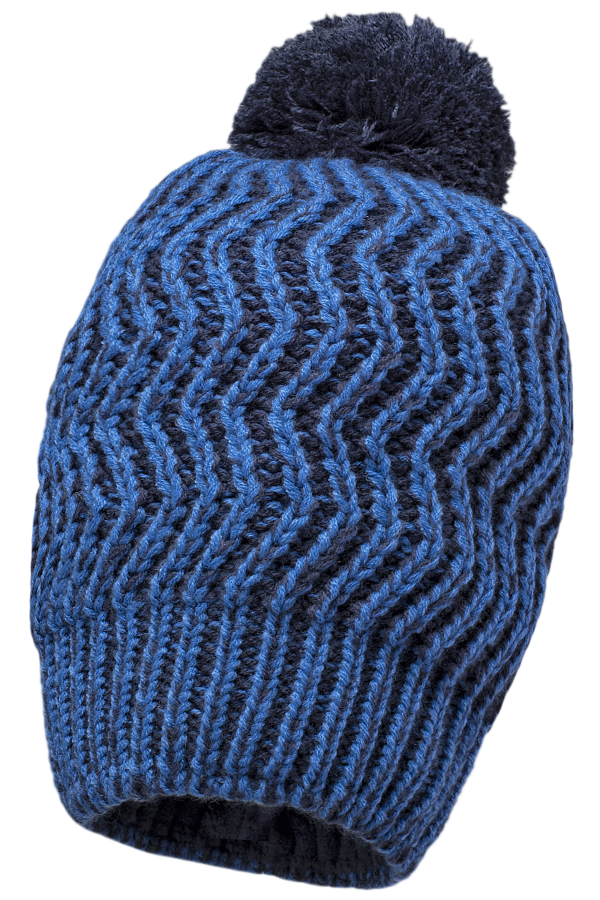 *Состав ткани: верхняя ткань – 100 % Акрил; подкладка 100 % Полиэстер *Теплая шапка объемной вязки, с помпоном *Подкладка - флис 10 см. *Цвет глубокий синий, темно-синий