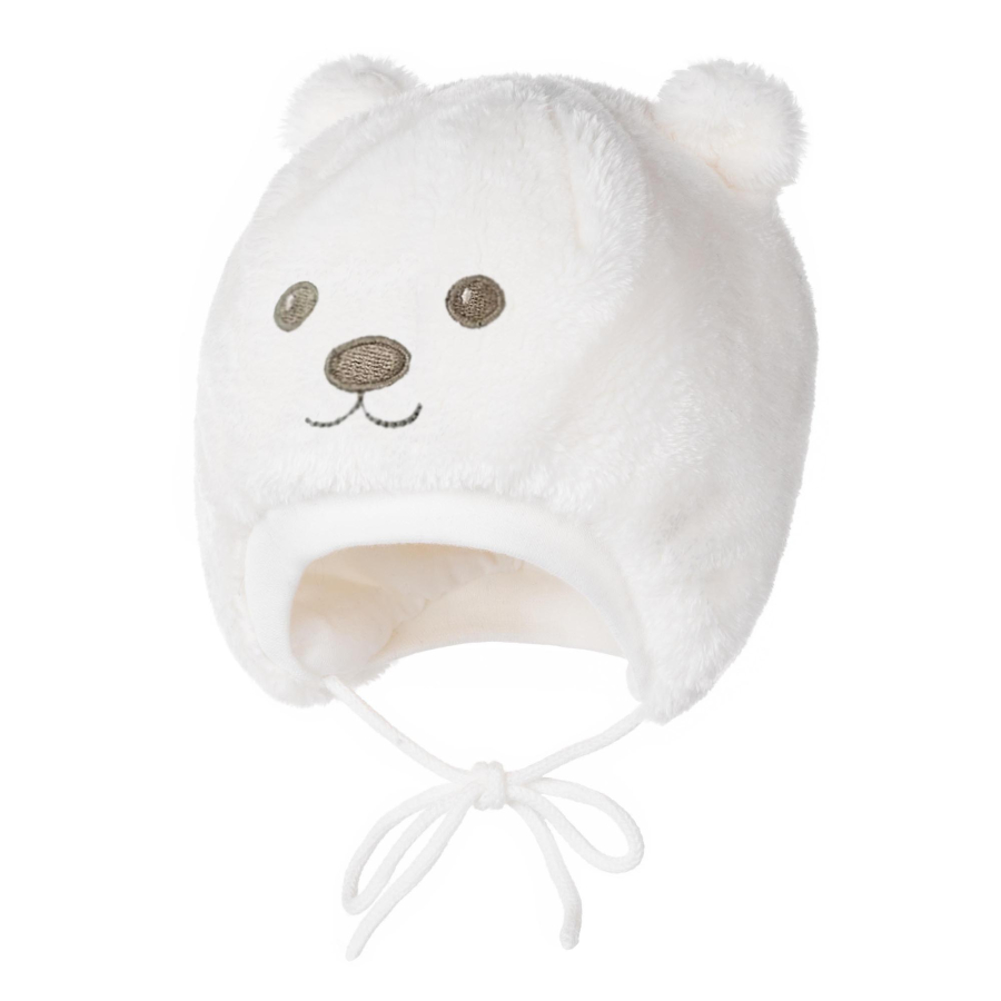 *Состав ткани: верхняя ткань – 100% Полиэстер; подкладка 100% Хлопок *Теплая велюровая шапка на хлопковой подкладке, на завязках *Шапка утеплена (утеплитель KERRYFILL 100гр.) *Цвет белый