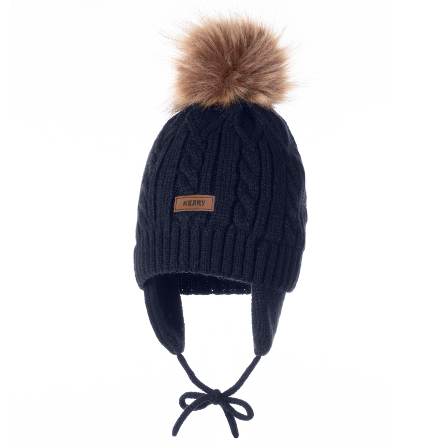 *Состав ткани: верхняя ткань – 100 % Акрил; подкладка 100 % Полиэстер *Теплая шапка объемной вязки на флисовой подкладке, с завязками, со съемным помпоном из искусственного меха *Цвет темно-синий