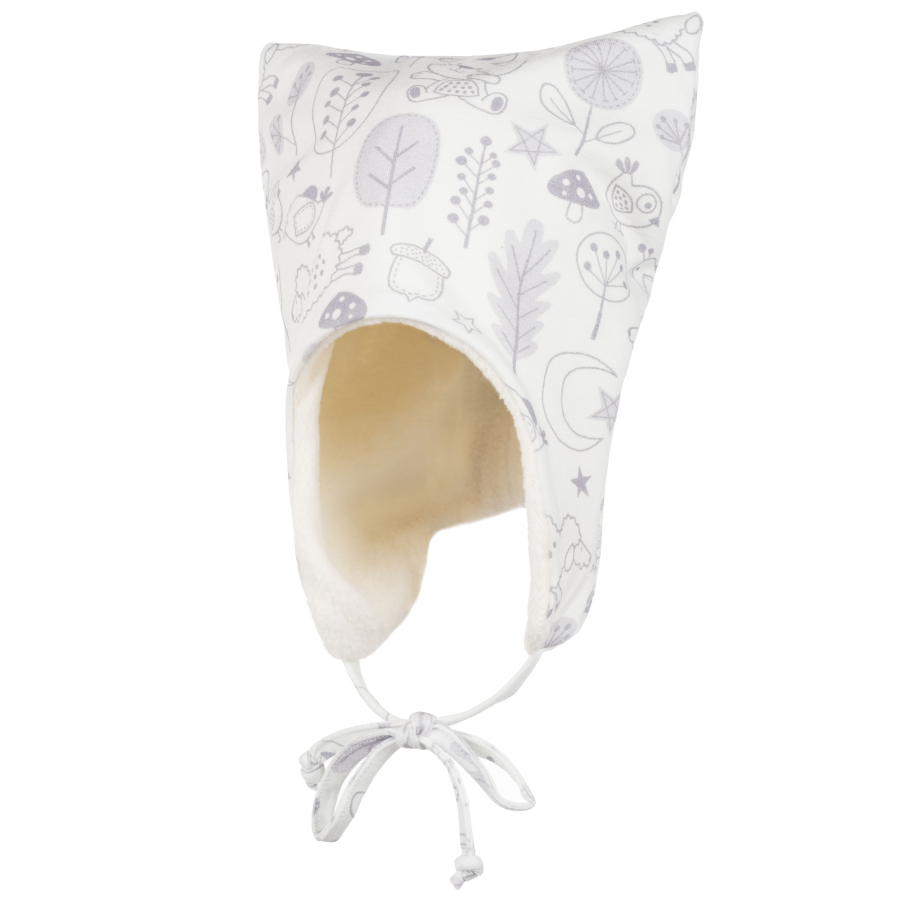 *Состав ткани – 92% Хлопок, 8 % Эластан; подкладка – 100 % Хлопок *Легкая демисезонная трикотажная шапка на подкладке, с завязками *Цвет бежевый, светло-серый
