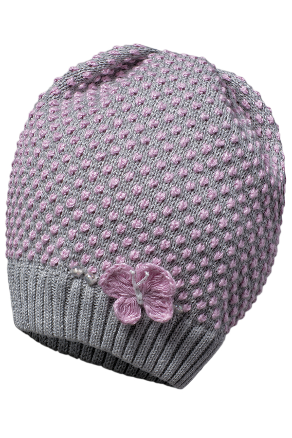 *Состав ткани 100 % хлопок *Демисезонная трикотажная шапка объемной вязки с аппликацией *Цвет серебристо-серый, нежно-розовый
