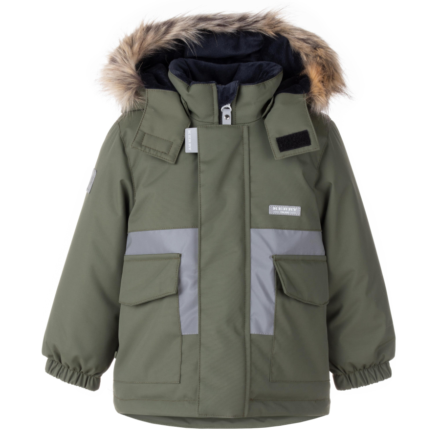 *По низу куртки - кулиска для регулировки объема, со стопперами*Имеются светоотражающие элементы*Цвет зелено-серый