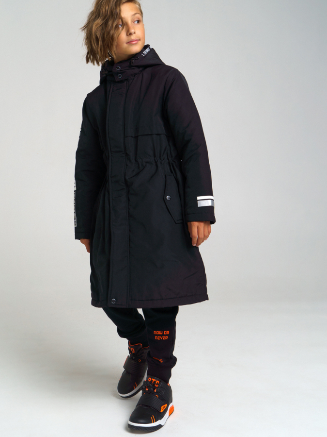 * Товар бренда PlayToday (Германия-Китай) * Состав ткани: Верх: 100% полиэстер; Покрытие: 100% полиуретан; Подкладка: 100% полиэстер; Наполнитель: 100% полиэстер, 150 г/м2 * * Пальто демисезонное * ткань верха с водоотталкивающей пропиткой * стёганая подкладка * несъемный капюшон, регулируемый шнурком со стопперами * внутренняя и внешняя ветрозащитные планки * внутренняя утяжка по поясу * два нагрудных кармана * два боковых кармана на кнопках * внутренний карман * текстильный клапан для защиты подбородка при застегивании молнии * светоотражающие элементы * цвет: черный
