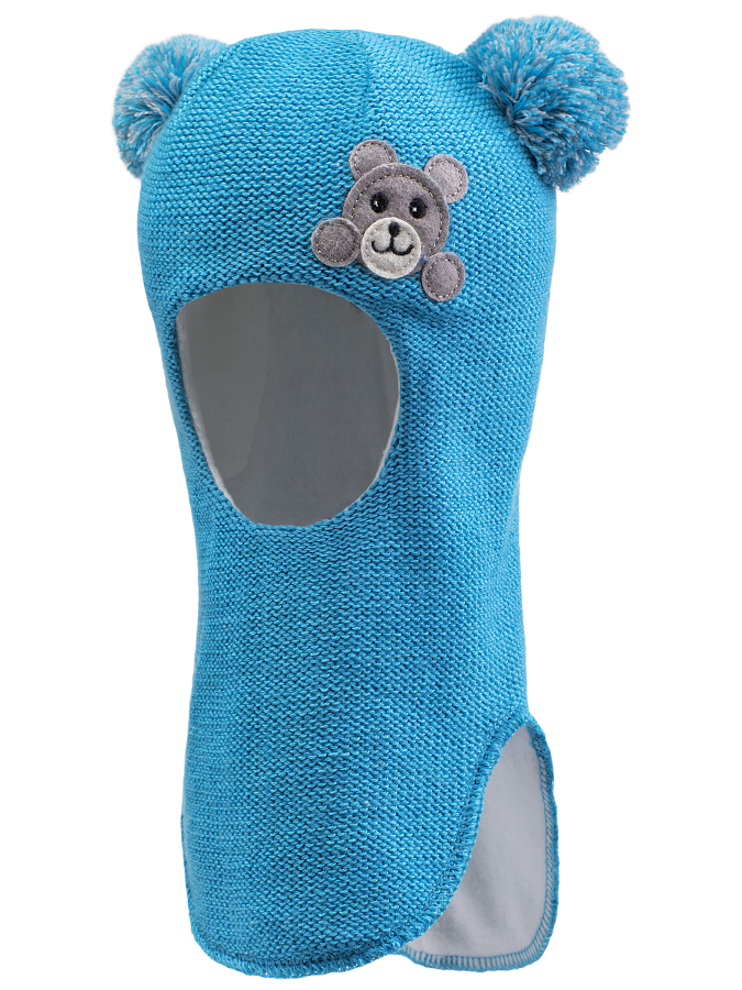 *Состав ткани: верхняя ткань – 50% Шерсть, 50% Акрил; подкладка 100% Хлопок *Теплый шлем на подкладке из хлопкового флиса *В области ушей имеется ветрозащитная мембрана *Цвет ярко-голубой