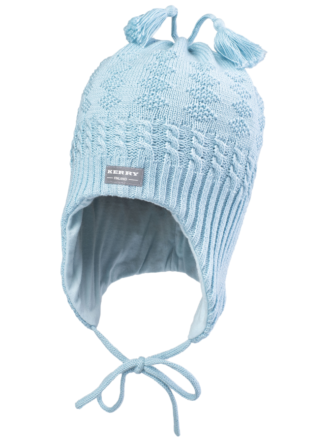 *Состав ткани: верх 100 % Органический хлопок; подкладка 100 % Органический хлопок *Демисезонная шапка на хлопковой трикотажной подкладке, с завязками *Цвет нежно-голубой