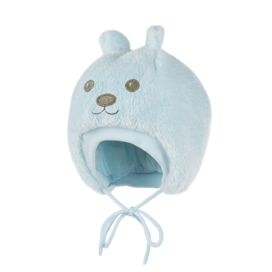 *Состав ткани: верхняя ткань – 100% Полиэстер; подкладка 100% Хлопок *Теплая велюровая шапка на хлопковой подкладке, на завязках *Шапка утеплена (утеплитель KERRYFILL 100гр.) *Цвет голубой
