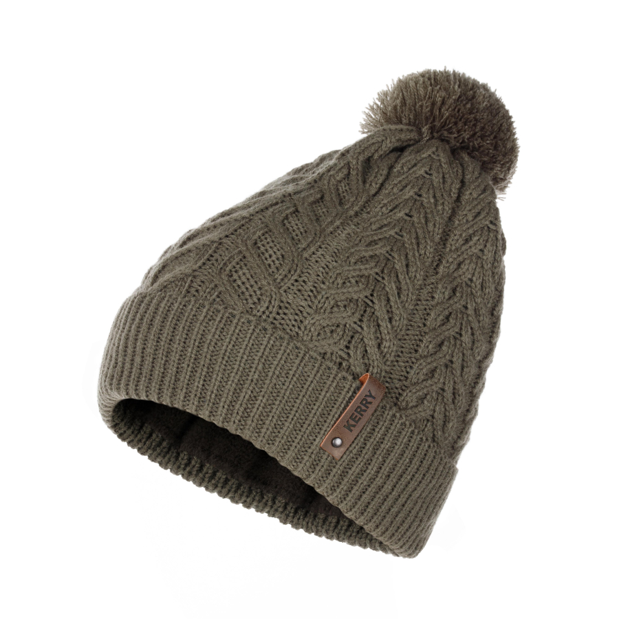 *Состав ткани: верхняя ткань – 100 % Акрил; подкладка – 100 % Полиэстер *Теплая шапка объемной вязки с отворотом, на флисовой подкладке, с помпоном *Цвет зелено-серый