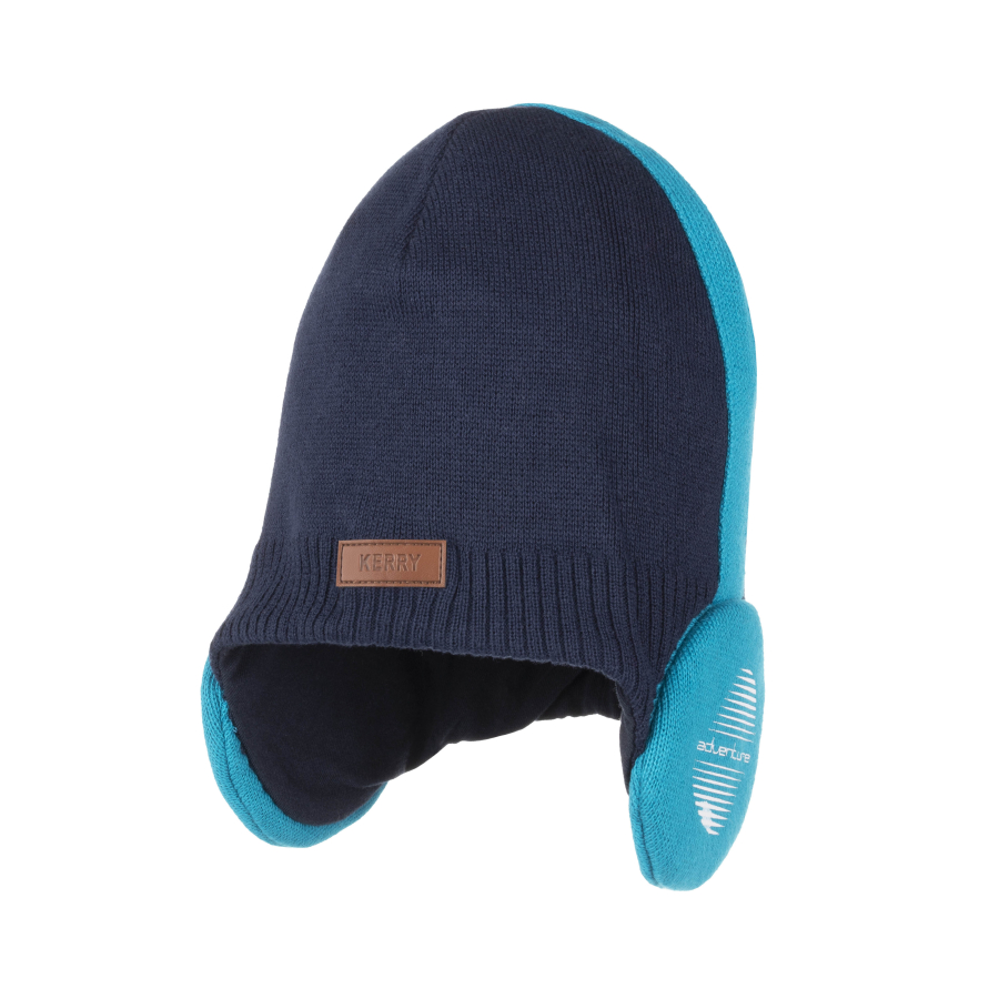 *Состав ткани: верх – 100 % Органический хлопок; подкладка – 100 % Органический хлопок *Теплая демисезонная шапка на хлопковой трикотажной подкладке *В области ушей имеется утепление *Цвет темно-синий, бирюзово-синий