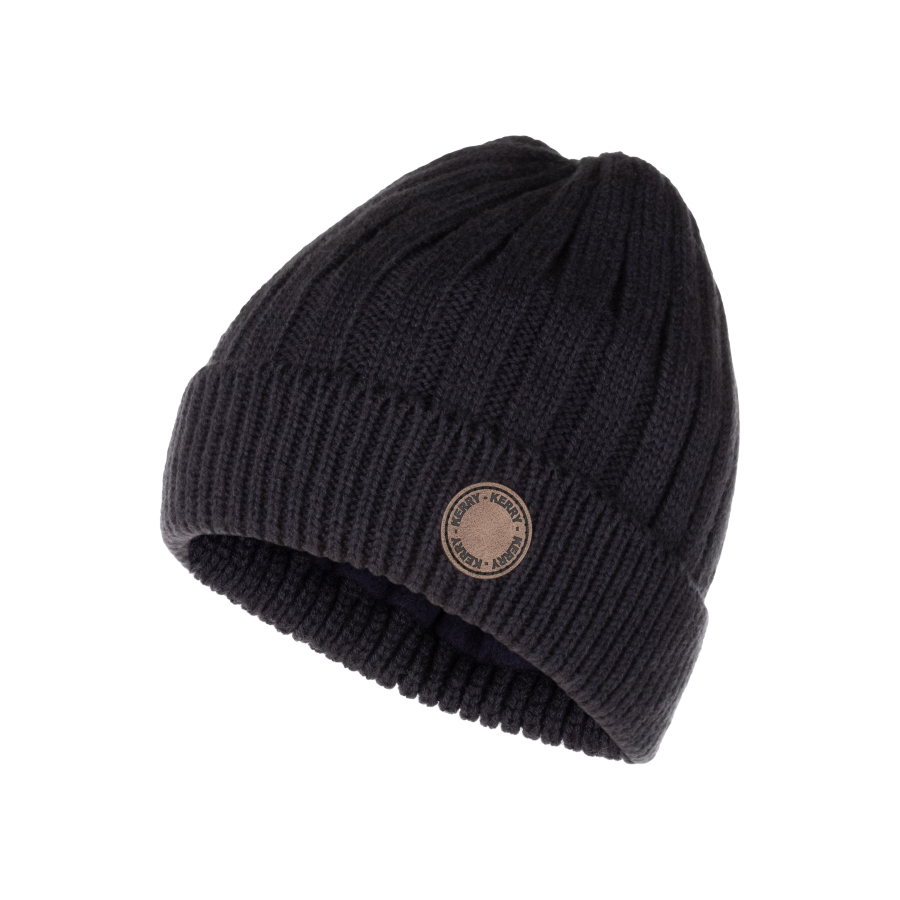 *Состав ткани: верхняя ткань – 100 % Акрил; подкладка – 100 % Полиэстер *Теплая шапка объемной вязки на флисовой подкладке, с отворотом *Цвет черно-серый